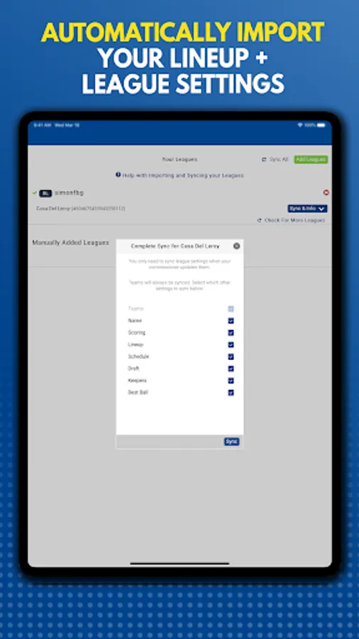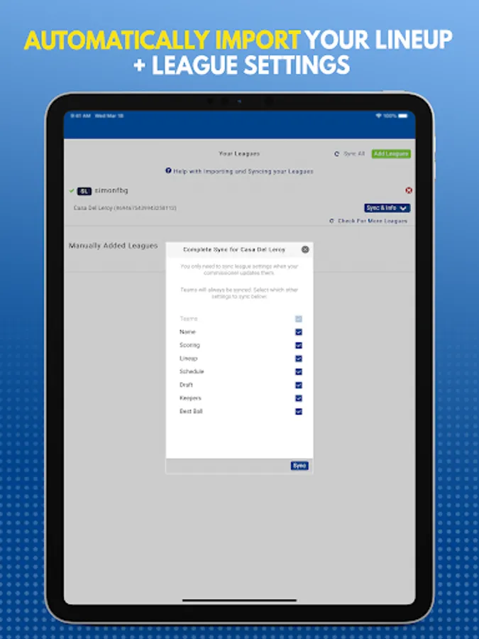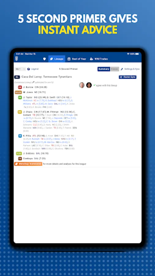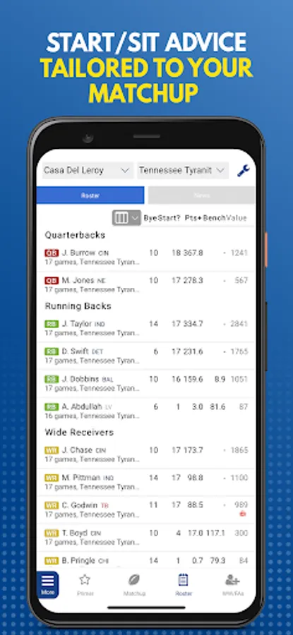 • Import your rosters from your league host (all major fantasy football providers supported)