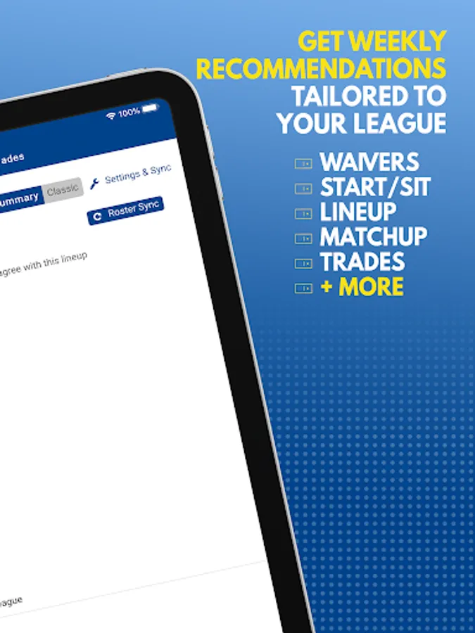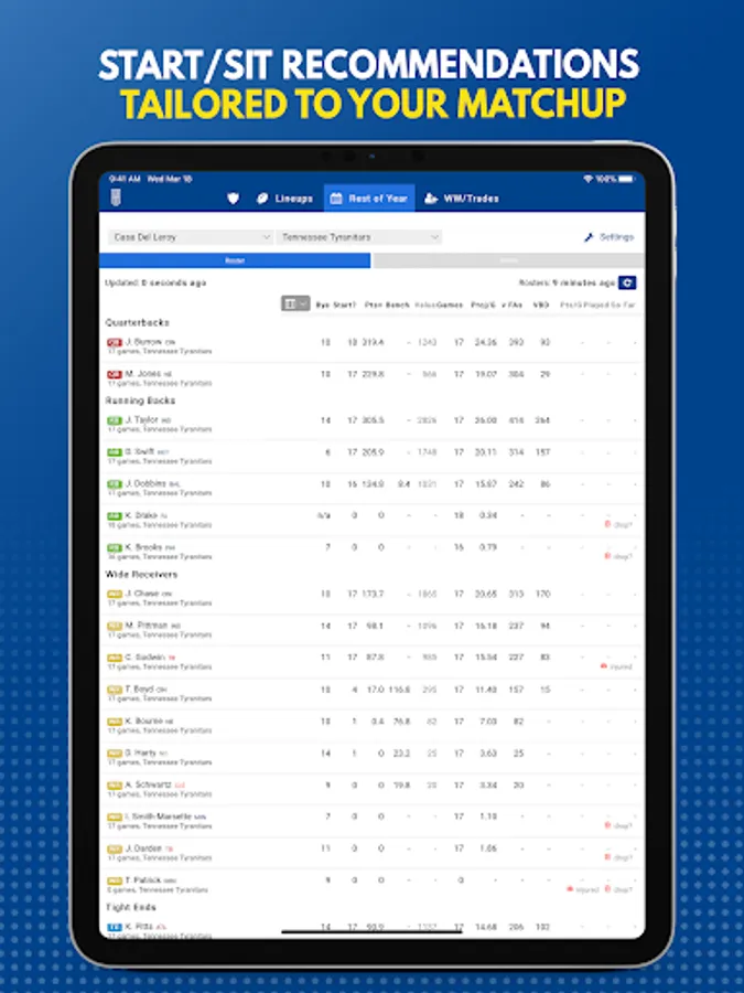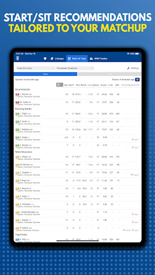 • Customize to your fantasy football league settings