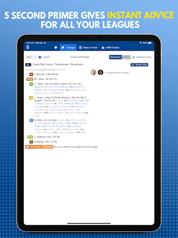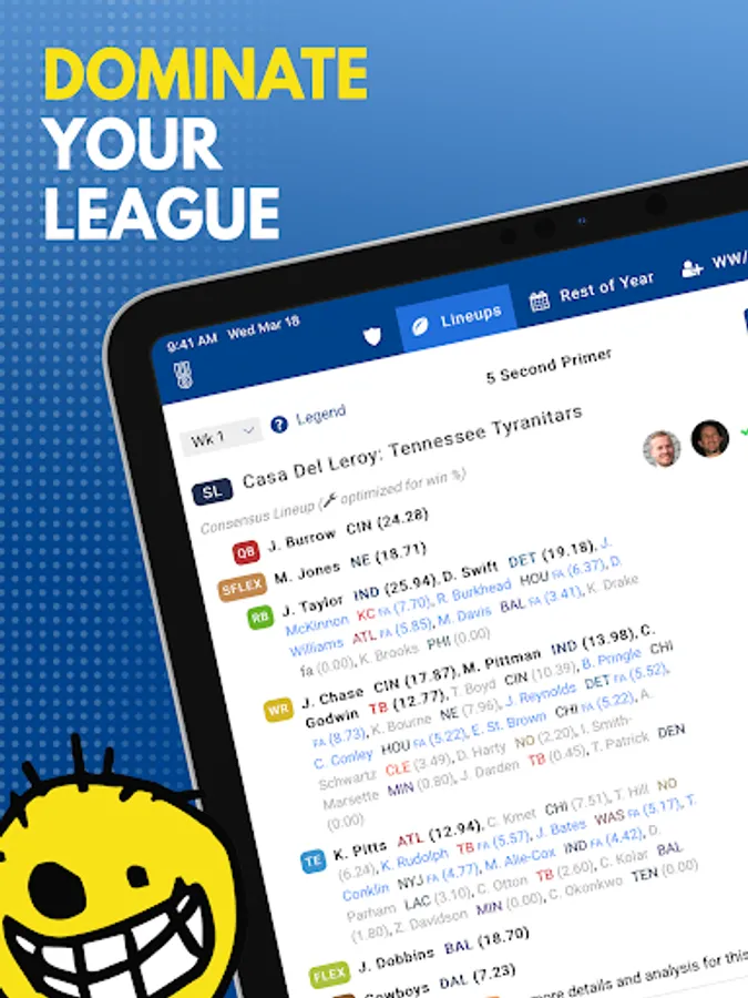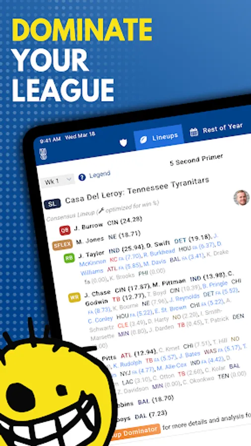 ► The most powerful & hi-tech app available for Fantasy Football Lineups from the guys who revolutionized drafting with the Draft Dominator: