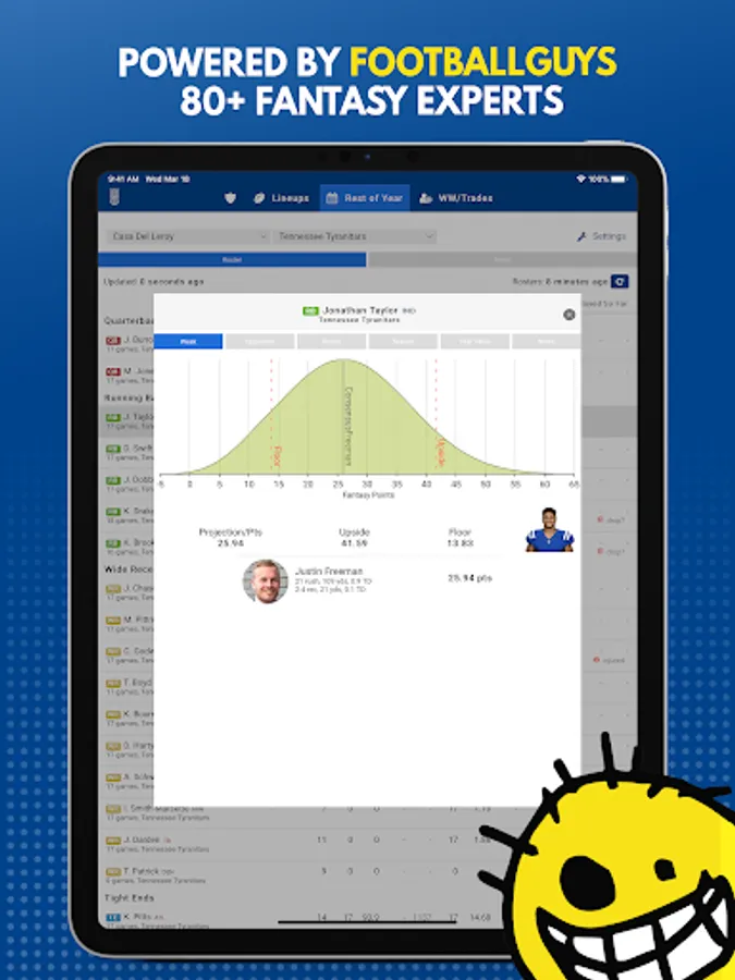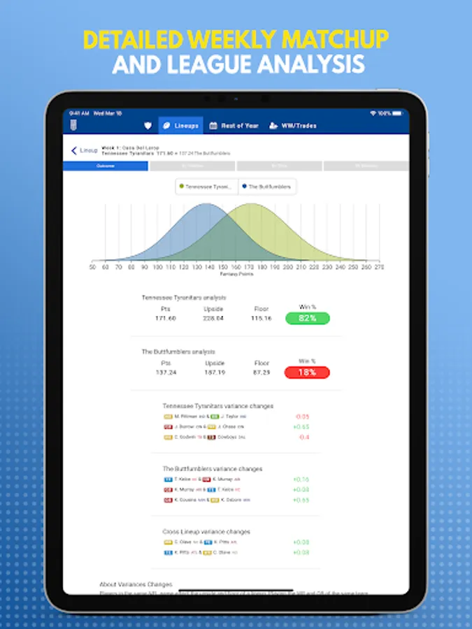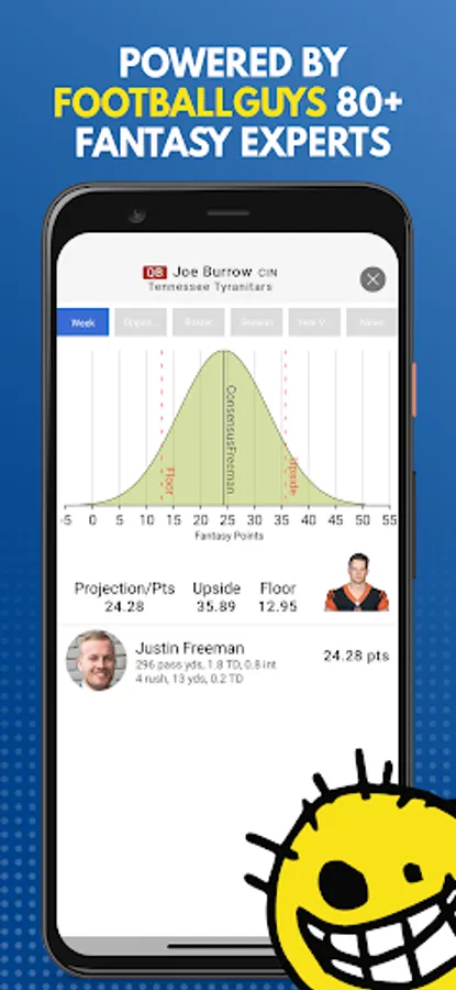 • Understands true probability of a player’s likely outcomes, not just a single points projection or worse still a weekly ranking!