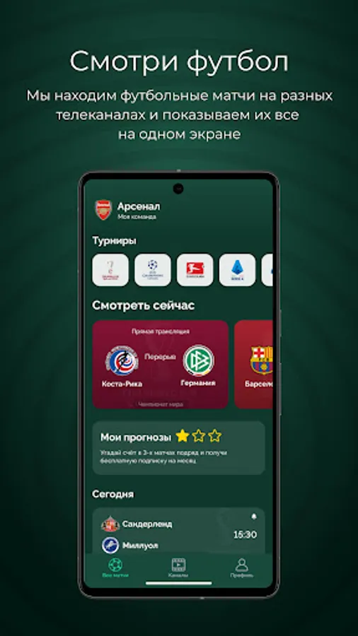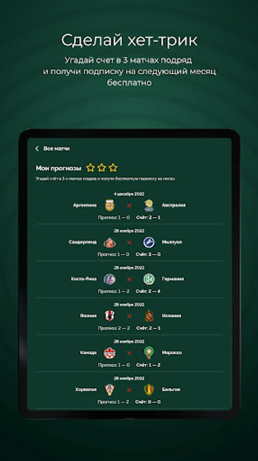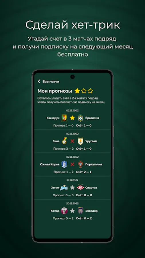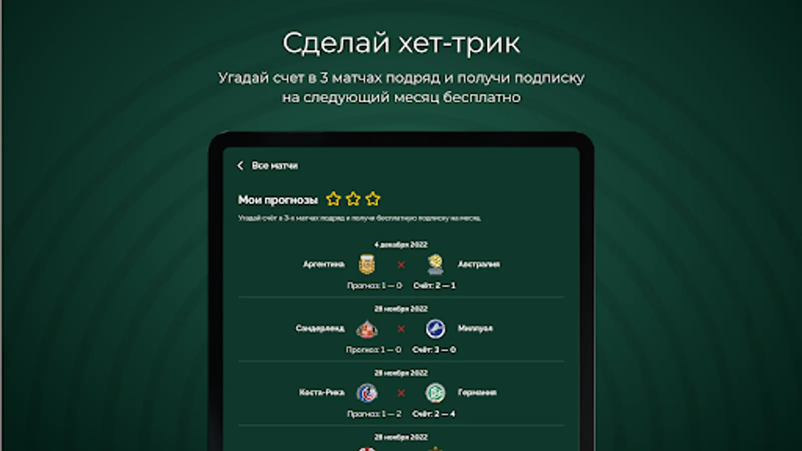 Guess the score in 3 matches in a row and watch football for free for a month!