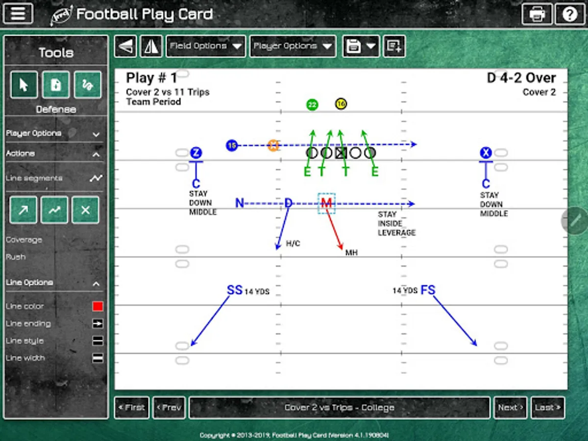 - Use preset offensive formations, defensive fronts, and defensive coverages to create play card