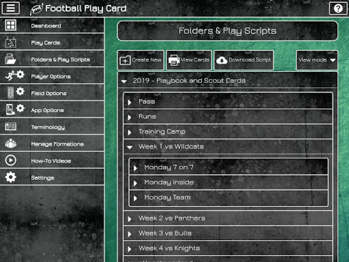 Get the free app as a part of your FootballPlayCard.com membership and you can instantly create and view play cards on your Android tablet.