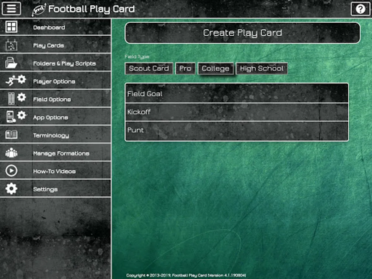 - Over 1000 unique preset play cards available (includes Offense, Defense, Kickoff, Punt, and Field Goal)