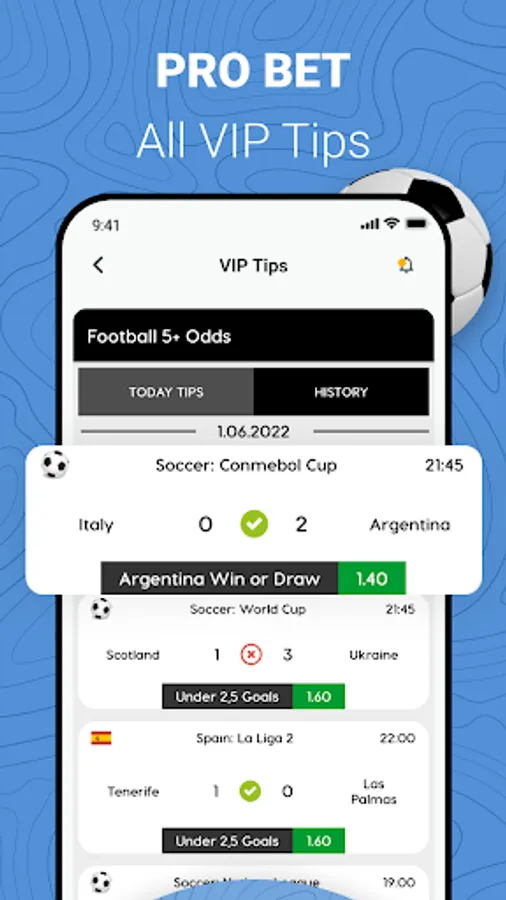 This free application offers betting tips of soccer results.