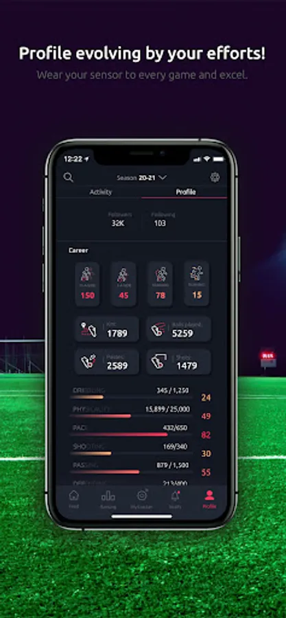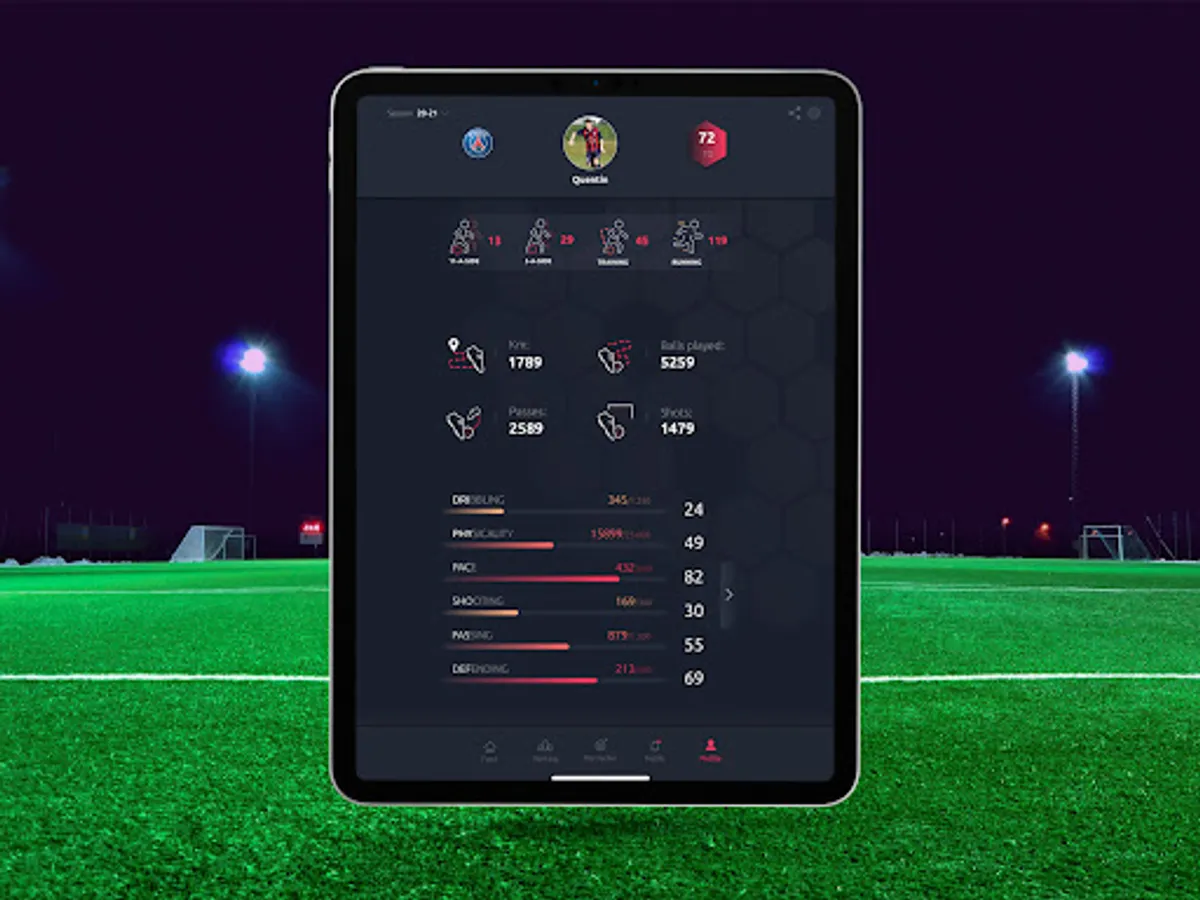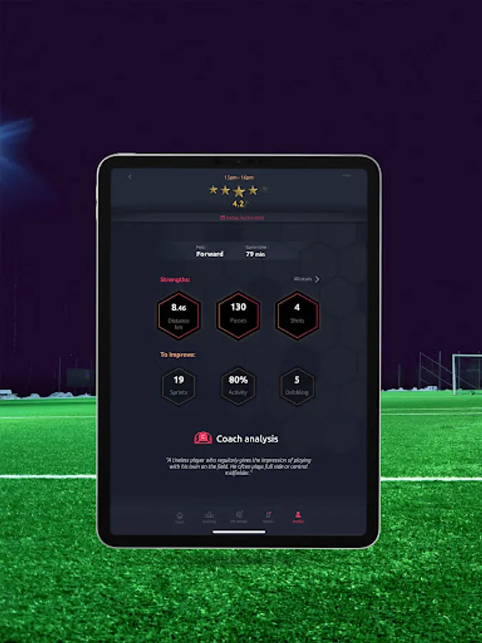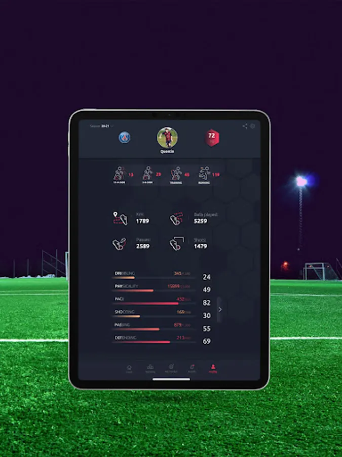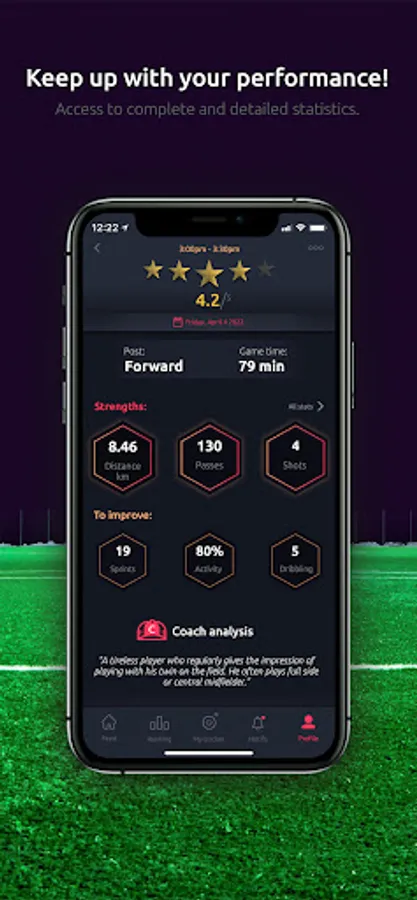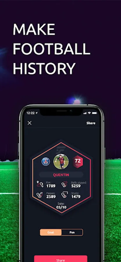 Our sensor, the Meteor, will allow you to have your statistics like your kilometers covered, your speed etc. In addition to these physical stats, you will be able to see your number of passes, your number of shots, your shooting power and many other technical stats!