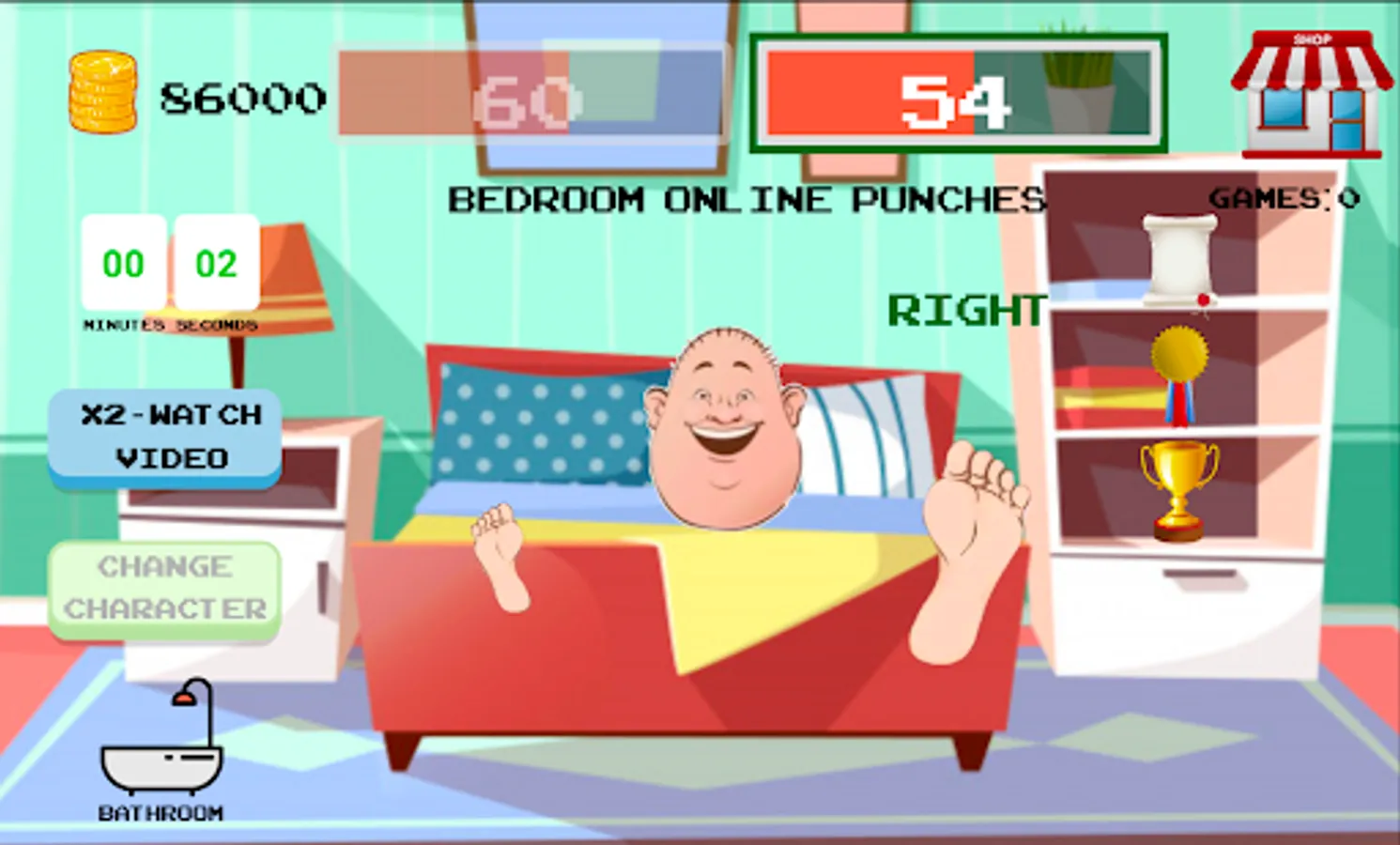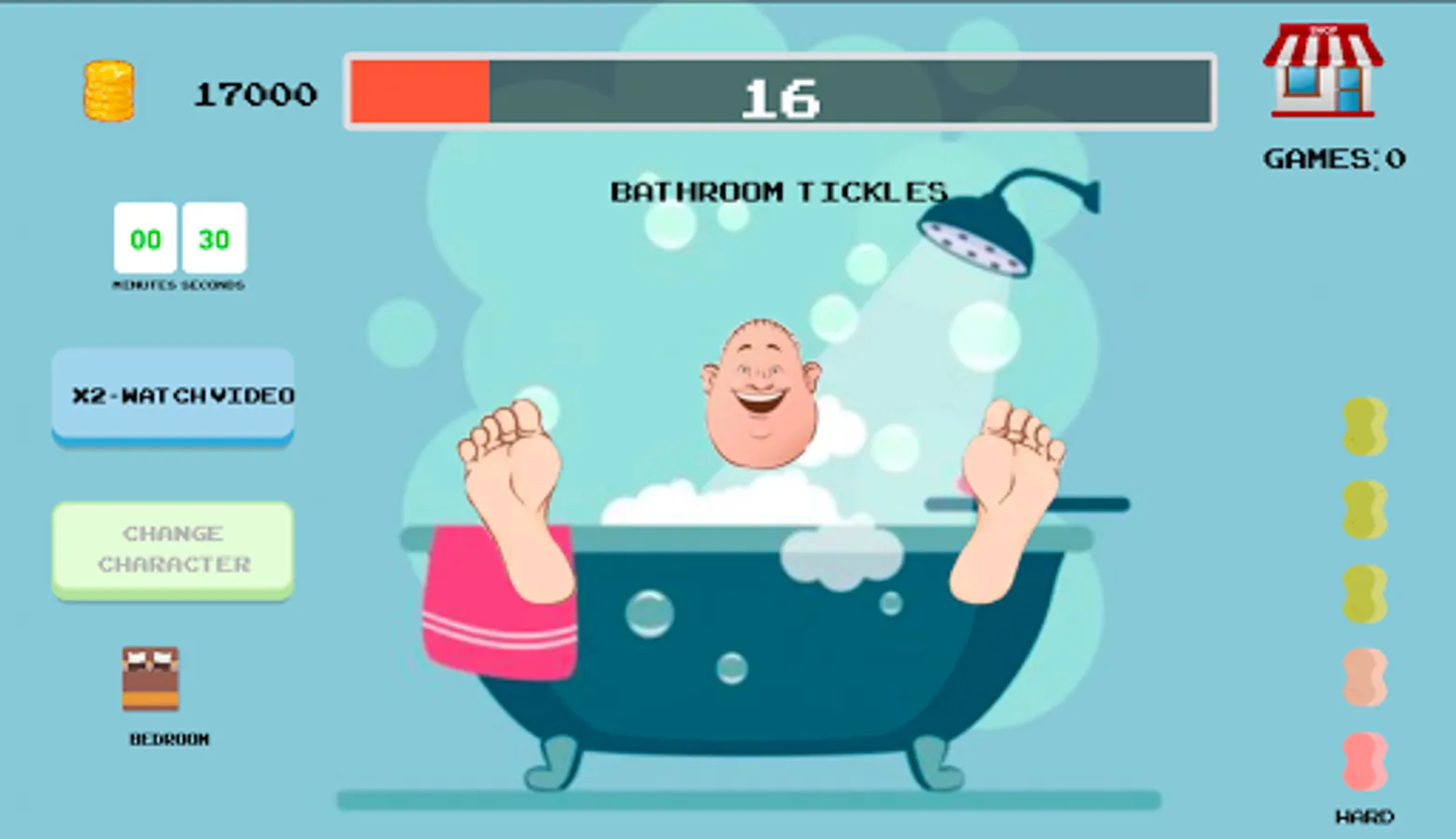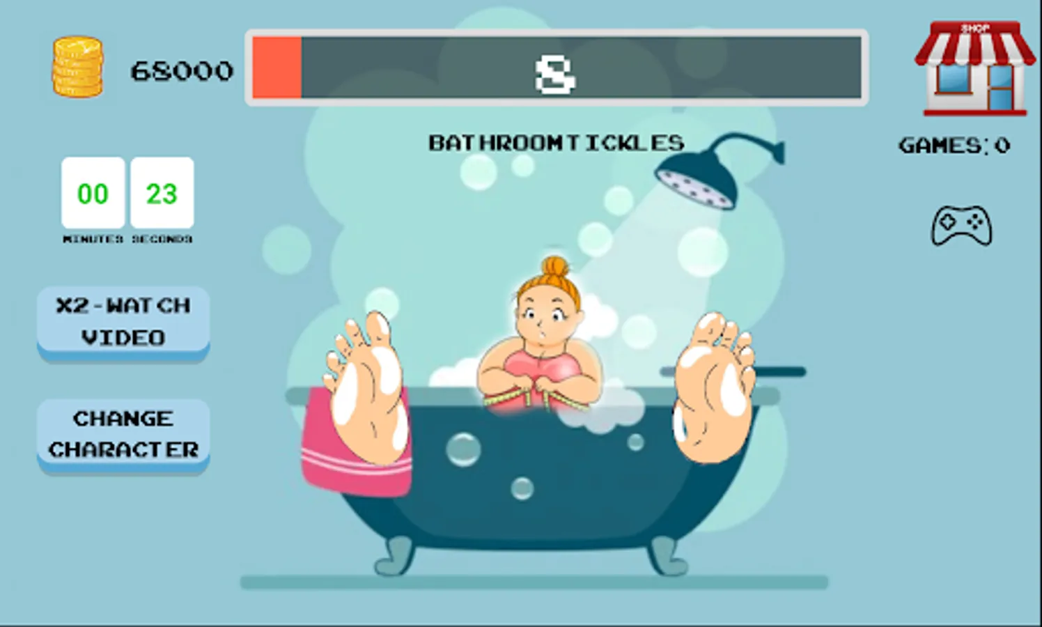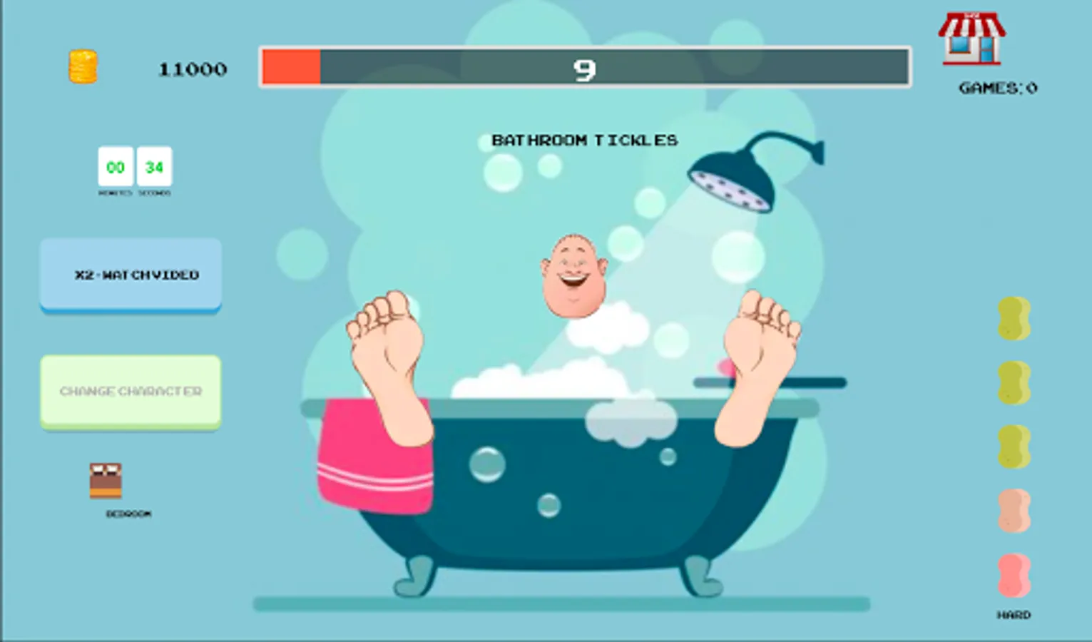 There are various rooms where you can play, first one a Bathroom where you have to swipe as a simulation of Tickle the Feet, and the other one is a Bedroom where you have to click every Foot.