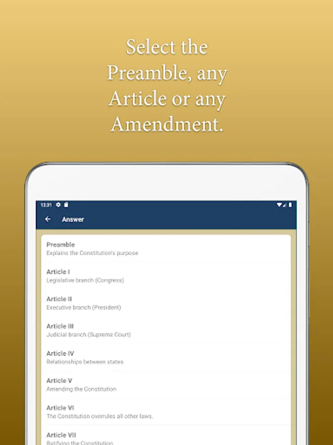 Learn all about the U.S. Constitution: the Preamble, all 7 Articles and all 27 Amendments!