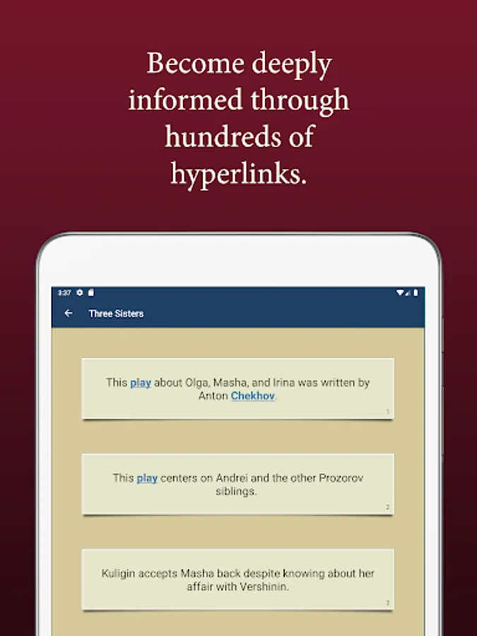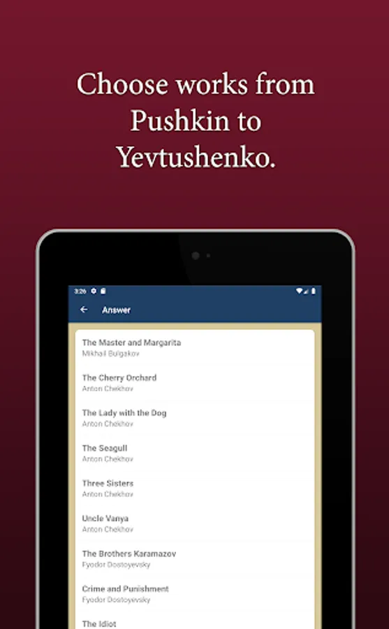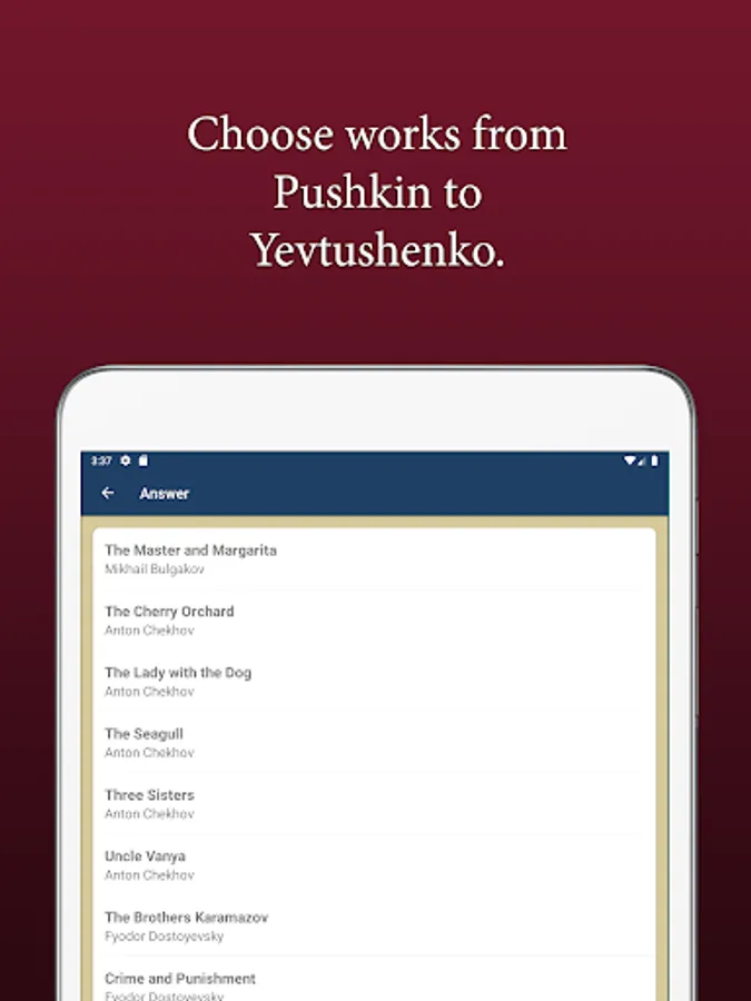 Allows quizbowl players to quickly learn the most common works of Russian literature studied in U.S. schools. An excellent study aid for MS/HS/college classes and for standardized tests.