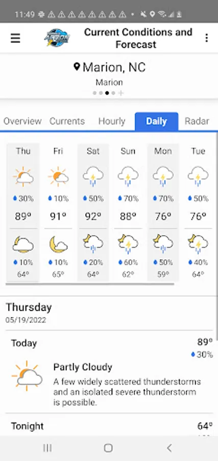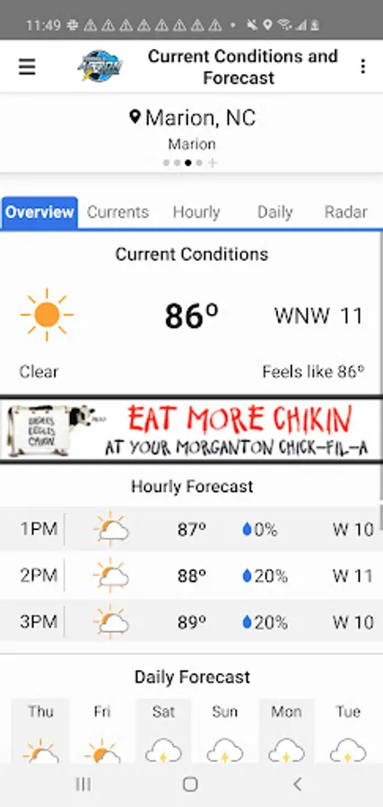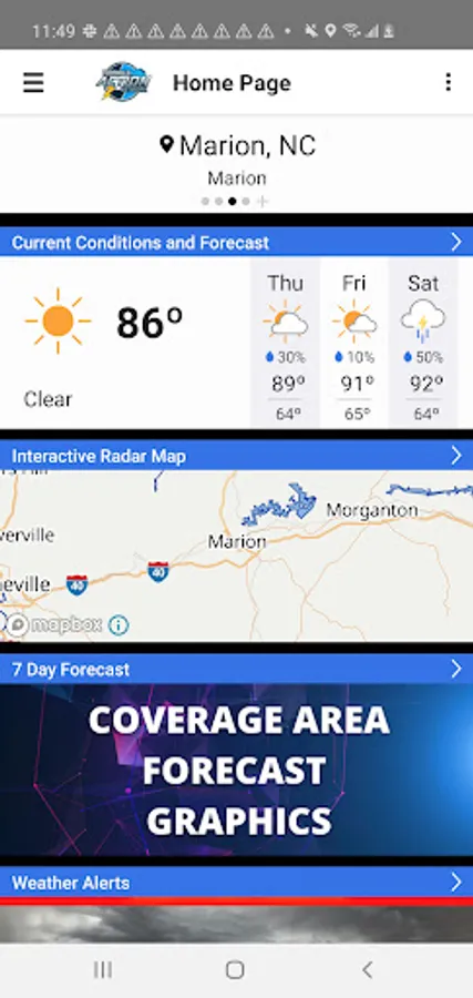 Foothills Weather Network is dedicated to providing quality forecasts and weather alerts for the Foothills of North Carolina for Alexander, Burke, Caldwell, Catawba, Cleveland, Lincoln, McDowell, and Rutherford counties since 2009. Using the Foothills WX app you have access to current conditions for your location or a location of your choosing, interactive radar, 3 and 7 day forecasts, live weather updates, and timely weather alerts to inform you of watches, advisories and warnings for severe thunderstorms, flash floods, tornadoes, lightning, rotating storms, and more. Sponsored by Schoenen Pool and Spa, Chick Fil A of Morganton, and Cu Healthy Products!
