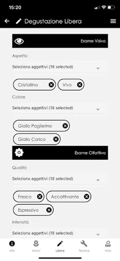 Carrying out tastings with Tastingnotes allows you to evaluate a well-rounded wine. Thanks to the intuitive interface it is possible to proceed with the registration of the tasting quickly without neglecting every aspect of the tasting. It starts from the visual aspect, and then moves on to the olfactory organoleptic analysis and the gustatory sensorial analysis. The tastings are then saved in chronological order and the user can recall them at any time.