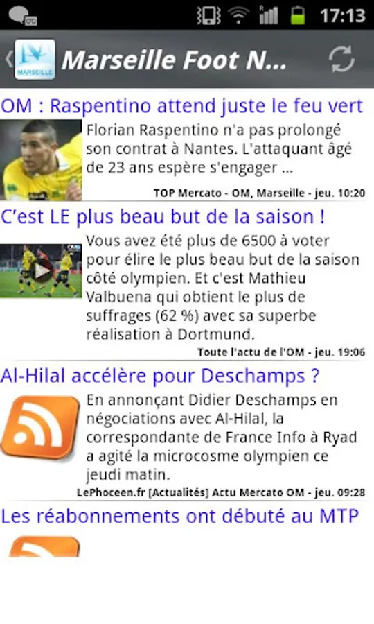 Marseille Football News is the perfect application for any fan of the OM. Follow your favorite as Gignac, Mathieu Valbuena, Nicolas Nkoulou, Steve Mandanda or Jordan Ayew and Andre Ayew players.