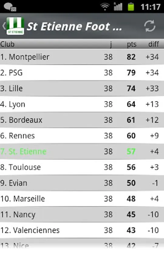 Follow all the news Green real-time during the championship but also in the transfer market, view the ranking and all the results in the blink of an eye.