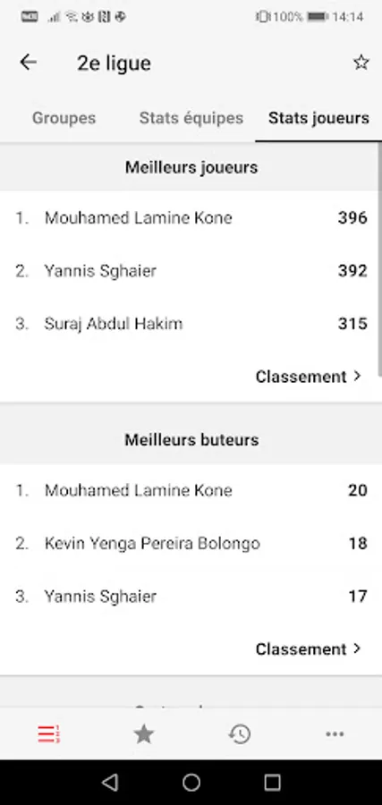 Player statistics (minutes played, yellow cards, goals scored, ...)