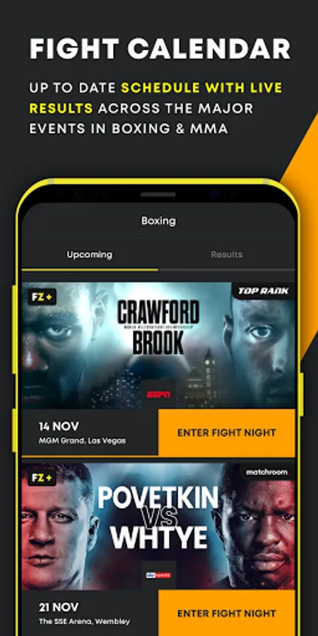 Fight Calendars & Live Results - Stay up to date with all the action and see when the next big fight is scheduled and what broadcasters are showing the fights.