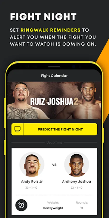 As well as news and the scorecard, we also offer Ring Walk Reminders to alert users to when a fight is about to commence, just select the alert for the fight you want to watch and we’ll send you an alert as they come walking out.