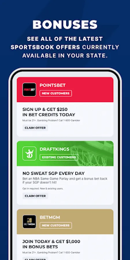 Place sports bets via the app; Real money gambling with top US bookmakers, like: