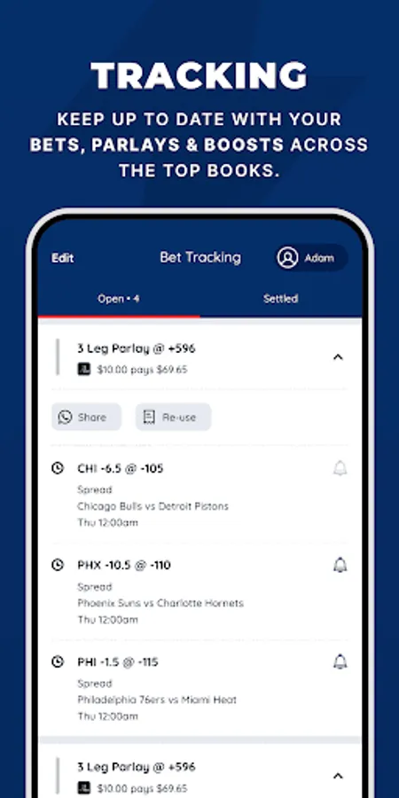 - Bet tracking, alerts & notifications