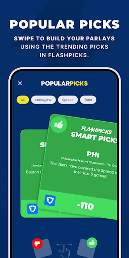 4. Popular Picks Sports Betting Tool - Swipe to add bets to your betslip based on the hottest trending bets