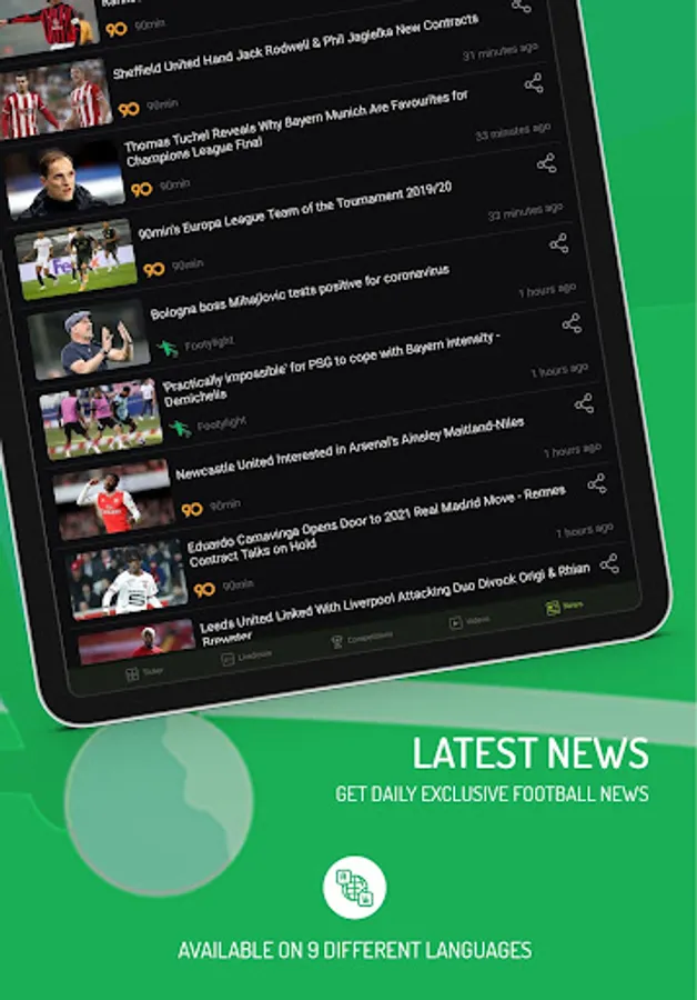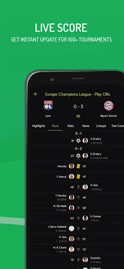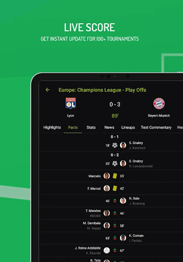 - Livescores: Including Facts, Match Stats, Commentary, Lineups, Results and Fixtures.