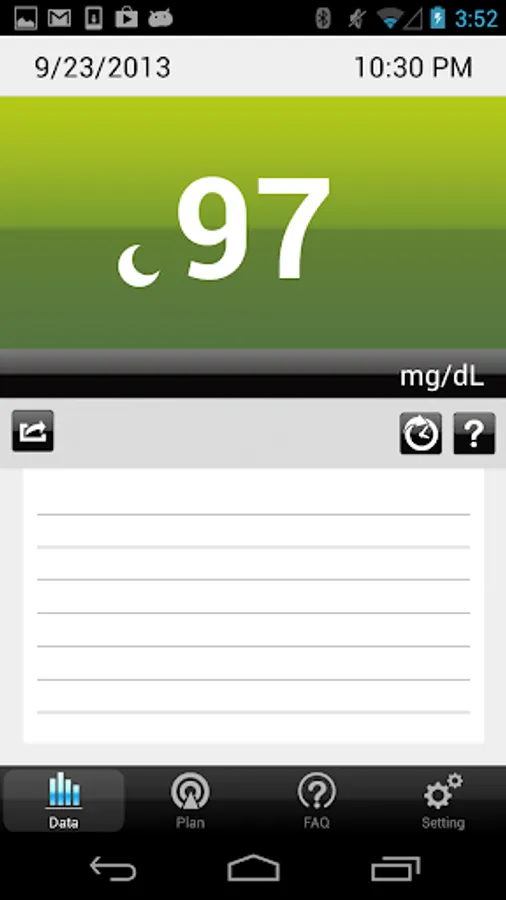 Data is organized into an interactive trend chart, where you will be able to connect the dots of 4 different measurement modes to see how the blood glucose level have gone up and down at different times of the day.
