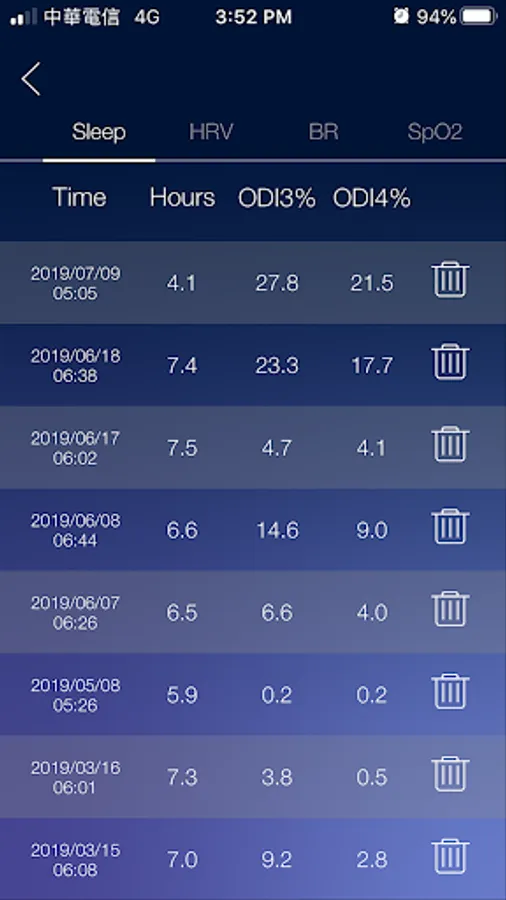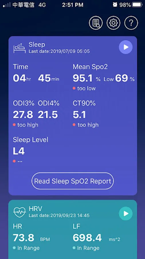 Sleep SpO2 analysis help test the severity of oxygen saturation deficiency. It could be used for not only risk screening but also for treatment improvement tracking (e.g. CPAP, breath exercise, pillow).