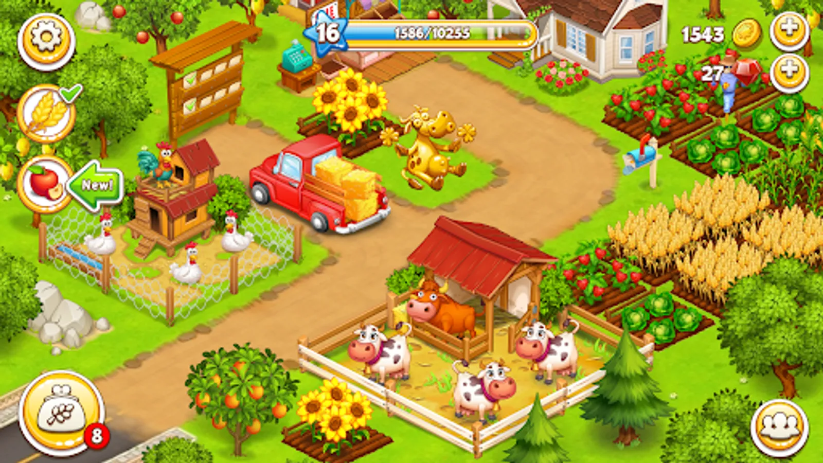 Tending a garden is surely the best way to spend your free time. Experience the quiet charm of rural life: a beautiful farm with a view to a river awaits you. Move to a happy village, become a farmer! Grow a variety of crops on your farm near township: hay, corn, vegetables, flowers, fruits and berries. Harvest delicious crops every day!