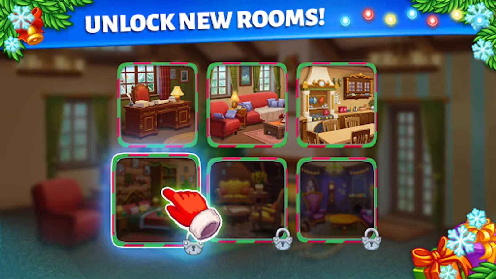 Merge & Design is a family game which uncover story of adventure, love and magic. Christmas is coming! Merge items, match tools and help Santa in his lovely home.