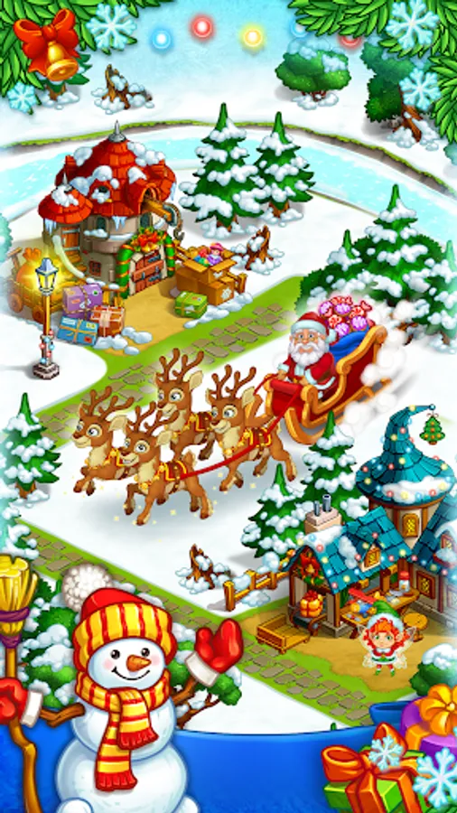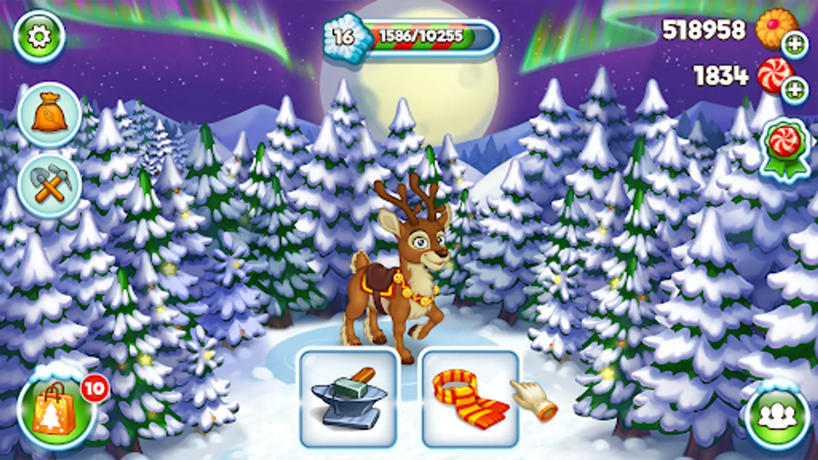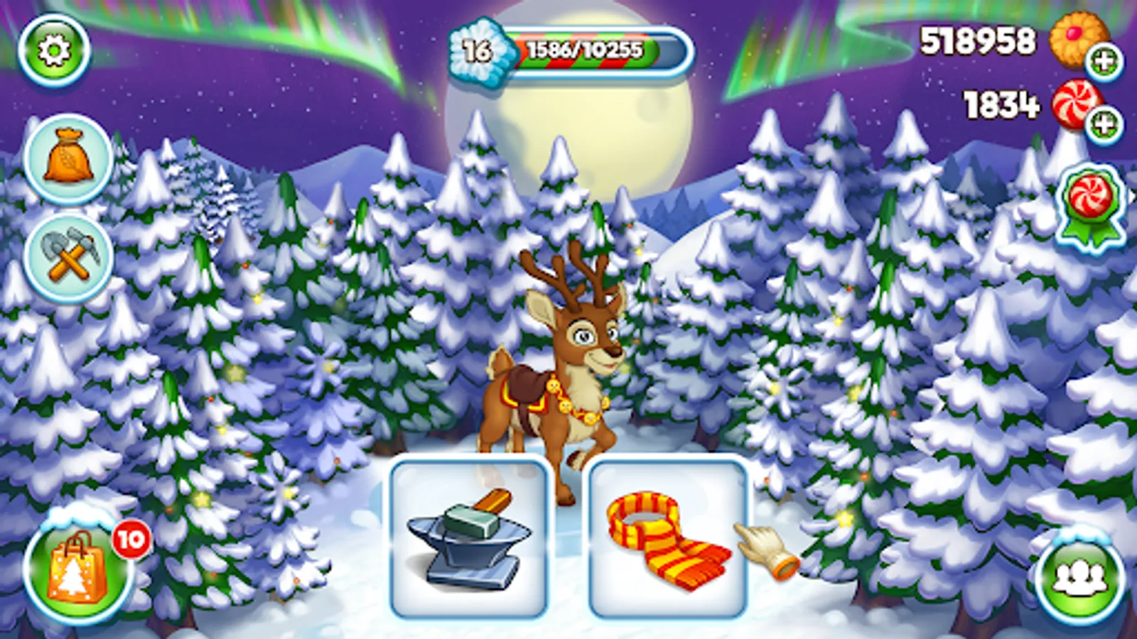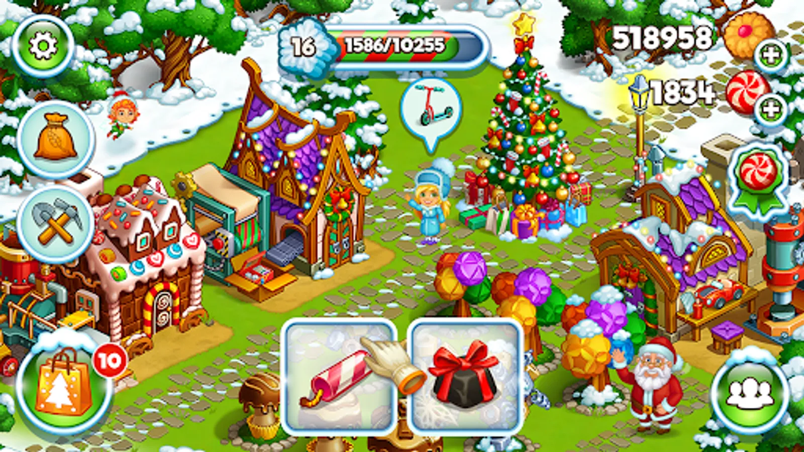 Meet new polar friends: Santa Claus, Rudolph, Snowman, penguin, elf and Bigfoot! Evolve your own snow township! Plant and harvest everything: chocolate, wool, paper, wood, iron. Build factories to craft gifts, toys, sweets.