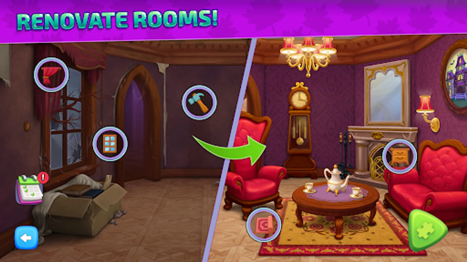 Play fun jigsaw puzzle & riddle games to renovate & decorate your house to Halloween!