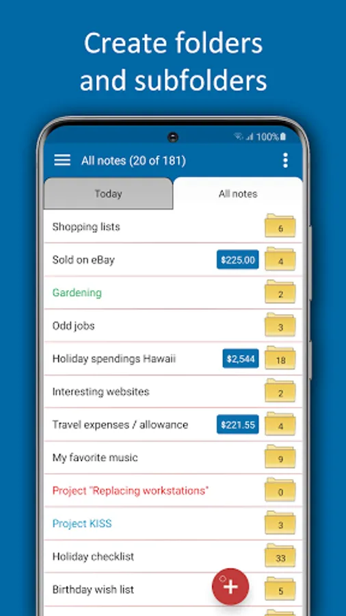 Just put everything you don't want to forget in ForAnyList. That can be thousands of notes, photos, videos, voice recordings or documents. Thanks to the handy folder structure and the search function, you can quickly find your notes back again.