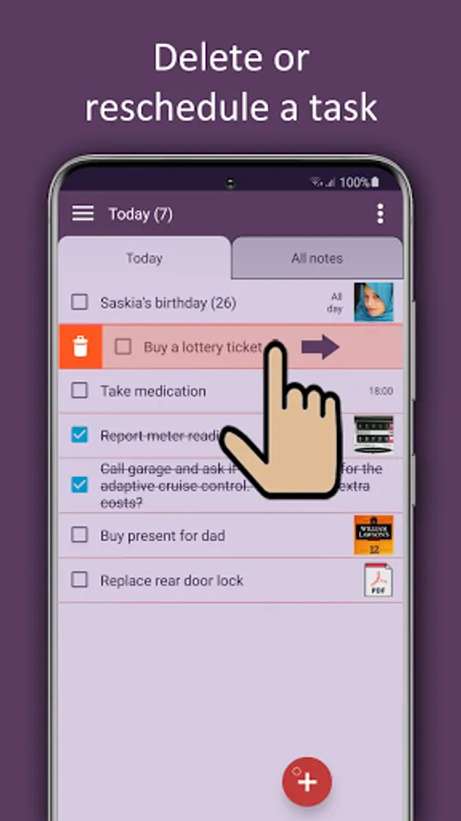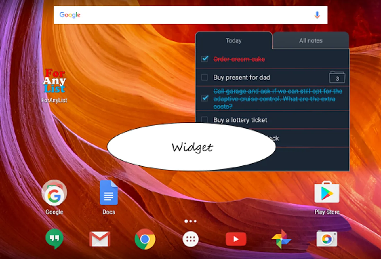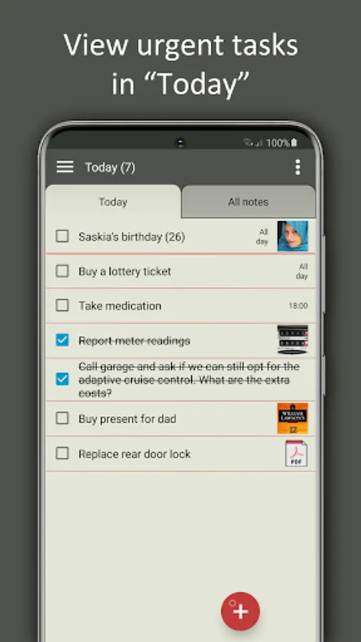 • Use the widget to show the list “Today” on your home screen.