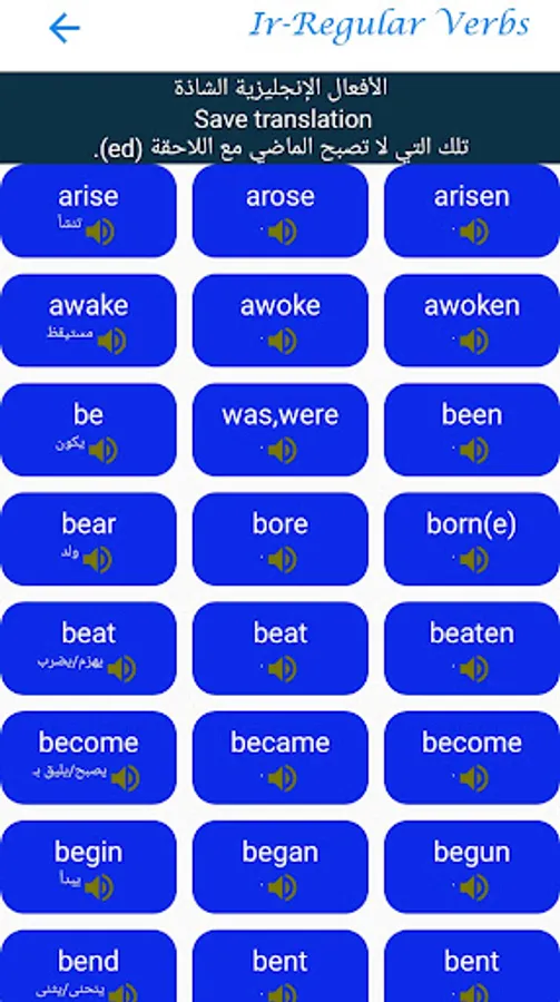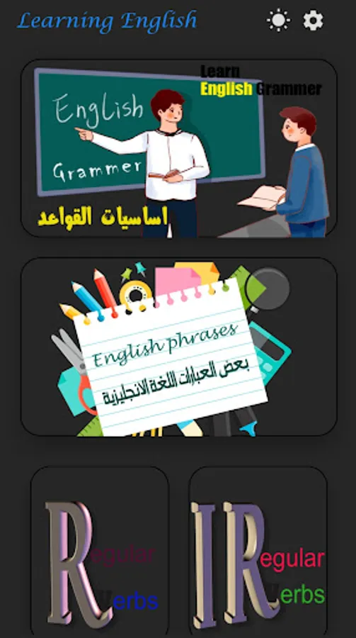 تم تصميم هذا التطبيق لمن يرغب في تعلم اللغة الإنجليزية بطريقة جيدة لأنه يحتوي على مقدمة جيدة لتعلم قواعد اللغة بأسهل طريقة وكل الجمل الإنجليزية مفصولة في زمنه مع مثال الجمل ، ثم يحتوي على بعض العبارات والعبارات التي غالباً ما تكون تستخدم في الحياة وهي تقرأ لك يوميًا ، وتحتوي على معظم الأفعال الإنجليزية ويمكنك أن تتعلم في الماضي والمضارع وصيغة المفرد بضمير الغائب ، باستثناء الأفعال العادية التي تصبح الفعل المضارع والأفعال الشاذة التي تصبح الفعل المضارع الماضي مفصول.