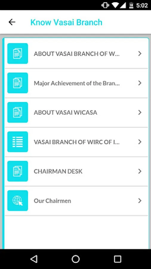 Vasai Branch of the CA Institute is one of the most active and dynamic Branch among other Branches and therefore during the span of just three and half years it was awarded as the Best Branch for the year 2008 in medium size category by ICAI and Best Branch award on 2008 by WIRC and after that continuously the Branch was also awarded with highly Commendable Performance award in Large Branches Category in the Year 2010 and 2011 by WIRC. In 2012 Branch was awarded with Best Branch Award from WIRC and Highly commendable Performance Certificate in large category from ICAI. In 2013 Branch was awarded with Best Students Association in large category from ICAI and Highly Commendable of Performance for Branch and Students Associations in large category from WIRC. In 2014 Branch was awarded Highly Commendable of Performance for Branch and Students Associations in large category from WIRC. In 2015 Branch was awarded with Certificate of Appreciation Students Association in large category from ICAI and Best Students Association & Certificate of Appreciation for Branch from WIRC in large category.