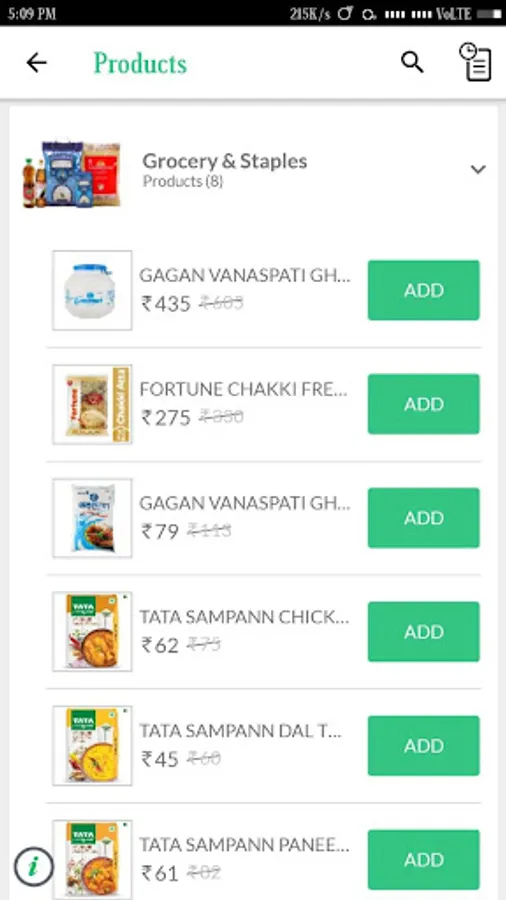 > Grocery & staples (Atta, Dal, Rice, Sugar, Spices, Cooking ingredients, etc.)