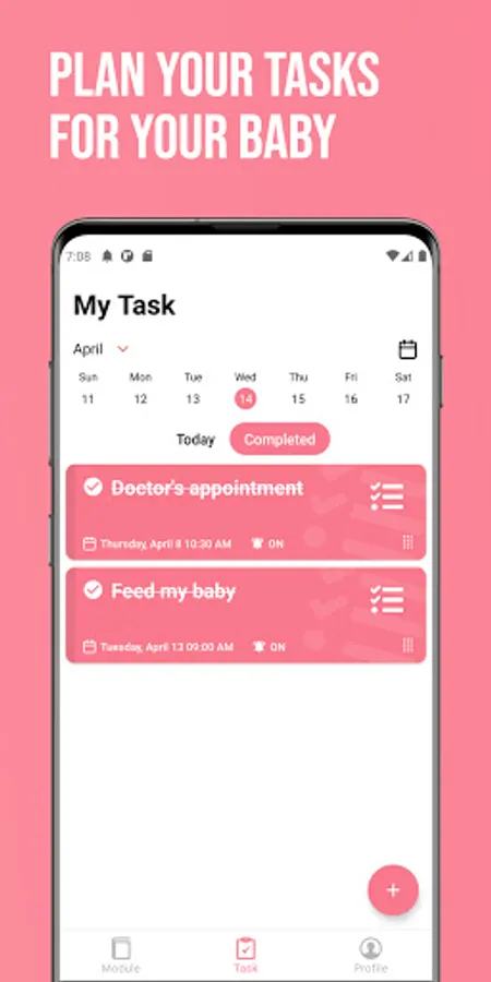 - Scheduled tasks and reminders to notify you of your set activities and care needs