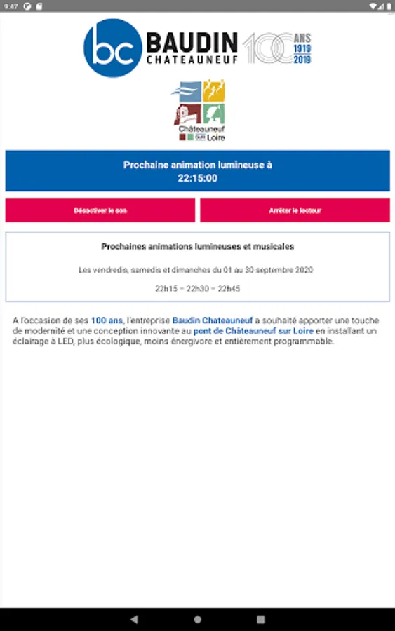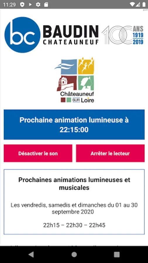 The dates and times of the "sound & light" events are specified on the application. Other activities may be scheduled occasionally during the rest of the year.