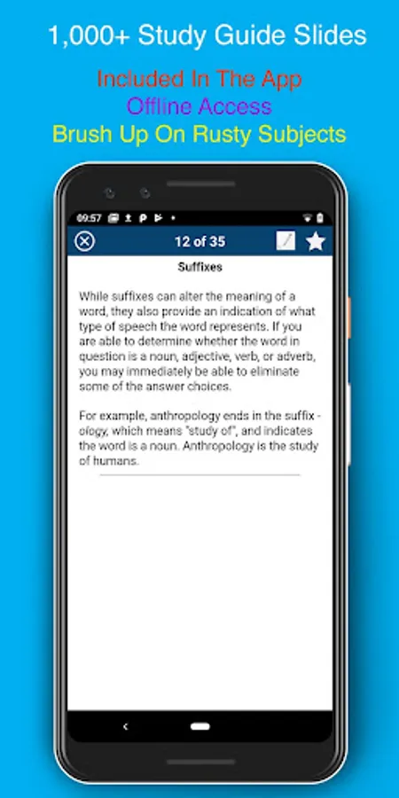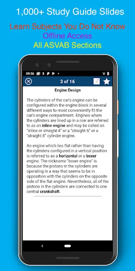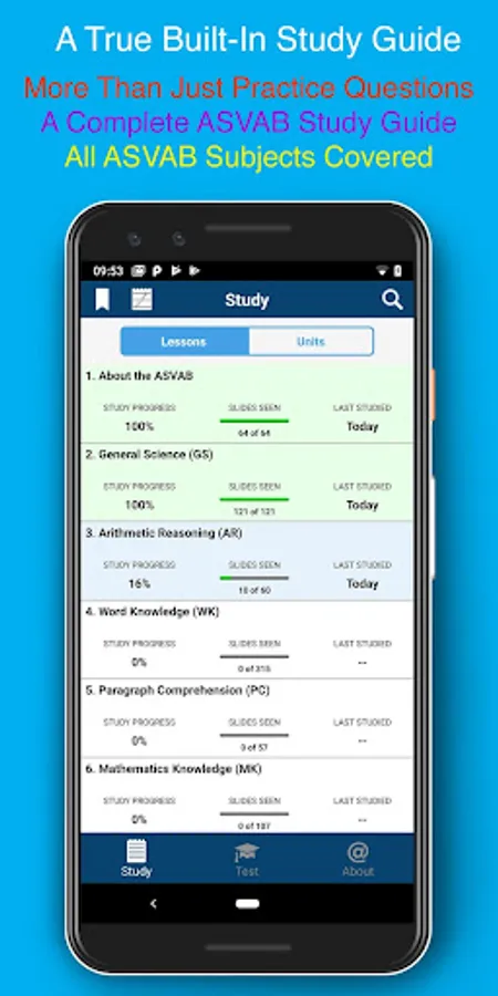 3. ASVAB PRO has a true BUILT-IN study guide. You can study over 1,000 instructional and tip slides covering all subjects. With ASVAB PRO you can brush up on topics and learn valuable tips without ever leaving the app.