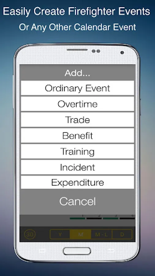 1. Ability to add and track ordinary events, trades, overtime, comp time, benefit days, incidents and training. Since FireSync is also a full-featured cal you can also see these events on other calendars and other devices sharing the same calendar account (e.g. spouse). FireSync is your all-in-one calendar app.