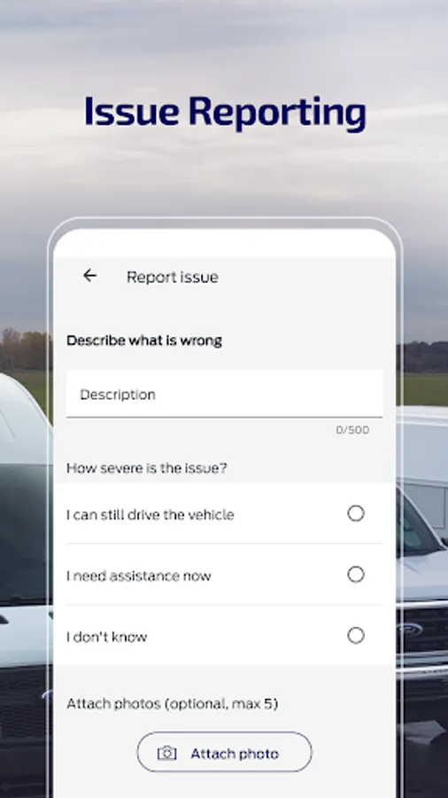 • Issue Reporting. Quickly and easily report issues with your vehicle to your company either during the daily check or at any time during the day.