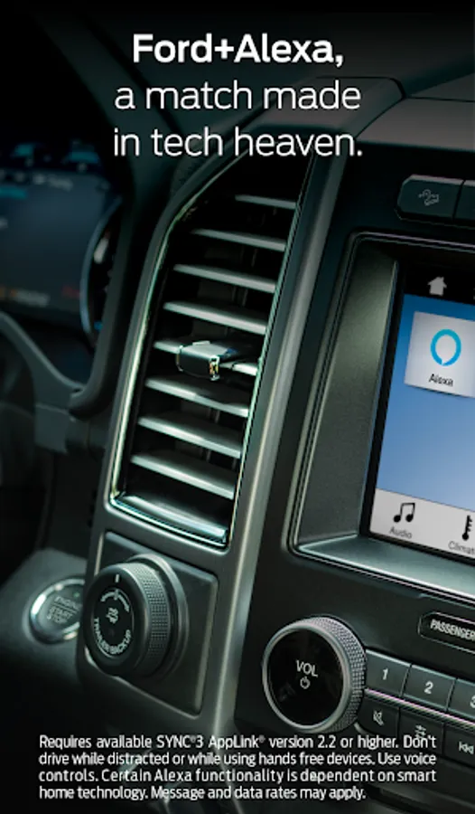 Bring Ford+Alexa with You on the Road: Access to Alexa in your Ford is now as easy as connecting your phone, starting the Ford+Alexa app and speaking to Alexa. Even with road noise, Alexa listens and provides you with the same information and access to Skills and features as you can get with an Echo in your home. Alexa’s familiar voice and responses then play through your vehicle’s speakers. You can access thousands of Alexa skills and services that Echo customers already enjoy. Pump yourself up on the way to the gym by saying, “Alexa, play my workout playlist.” Continue the book you were listening to, even during your commute to work. Check whether you have dinner plans on the drive home by asking, “Alexa, what’s on my calendar tonight?”