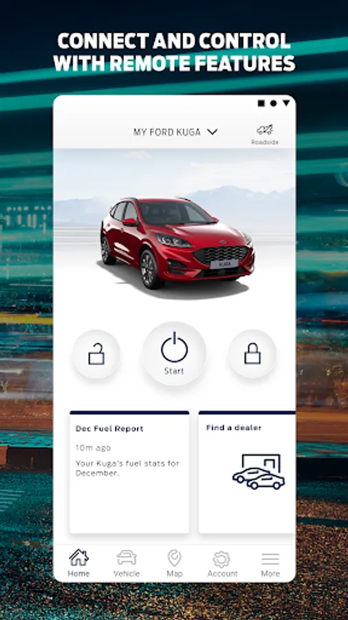 • Send convenient remote commands – Lock, unlock, and start your vehicle using complimentary remote vehicle controls (1) – when equipped with FordPass® Connect (2)