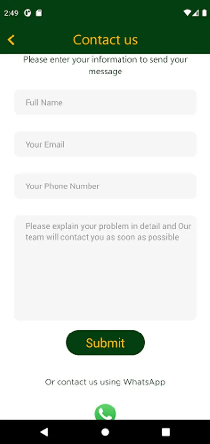 The application also contains a means of communication with us by sending an inquiry, complaint, observation through a special page for that, or communicating with us through the WhatsApp application through the same page to meet the customer’s needs and also to improve our services.