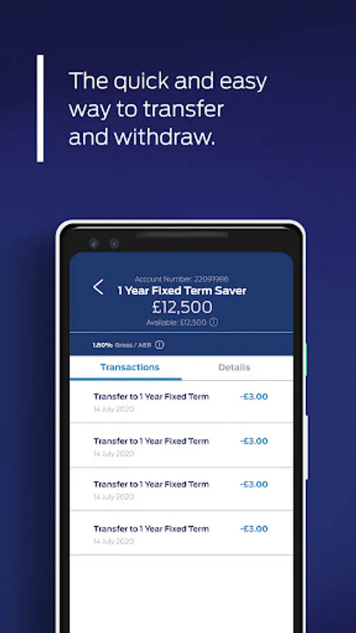 You can access your accounts, view your balances and review your transactions quickly and securely. In addition, you can now make transfers and withdrawals from easy access products you hold. And all with the convenience of using fingerprint or facial recognition to authenticate yourself and your transactions.
