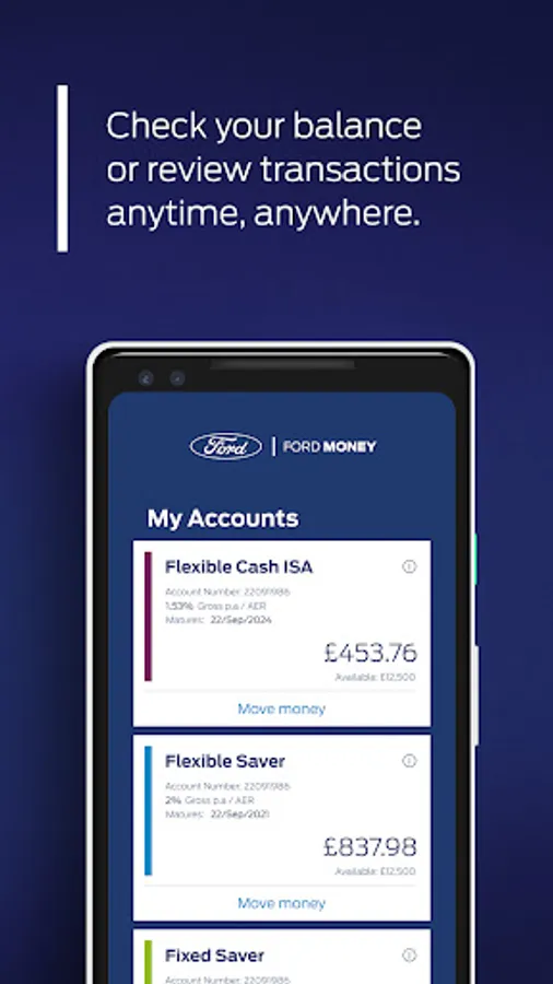 - Make internal transfers from Ford Money easy access accounts to other Ford Money savings