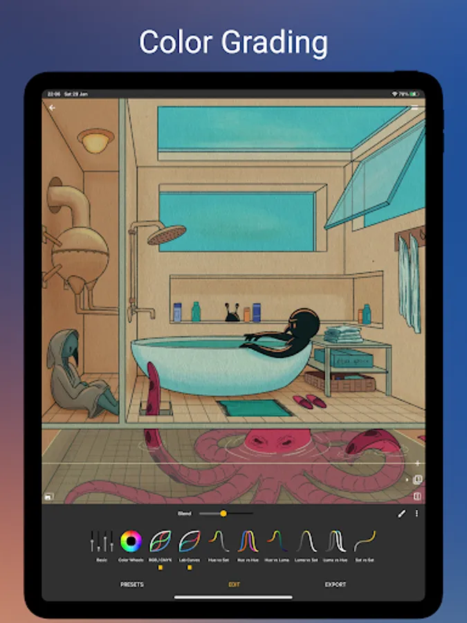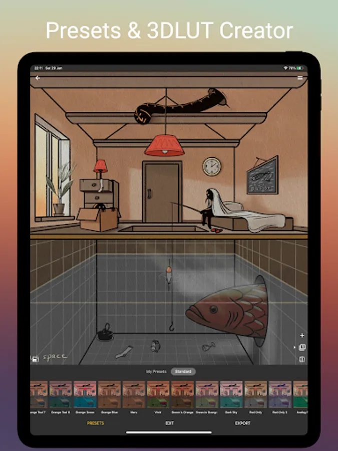 Export your color grading as 3DLUT (.cube) file or to your preset library to use it later or share with others. You can use build-in presets (filters) as is or as a starting point for your next color grading experiment. Remember - every preset is fully editable!