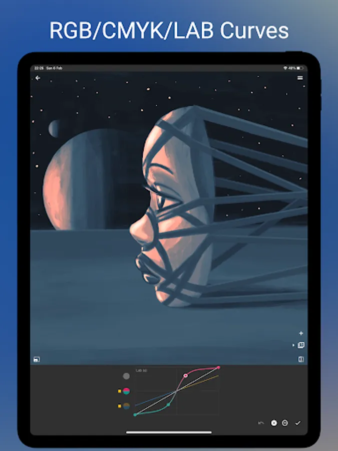 LAB curves - manipulate brightness (L), and A, B color channels of LAB color space - unlike RGB, LAB color channels don't affect brightness component, enabling more creative color manipulations.