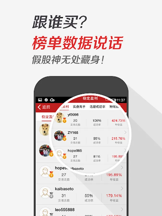 股票雷达依据用户的真实历史交易计算收益率,赚钱才是真本事!