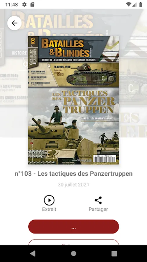 Since November, 2003, the success of Batailles & Blindés never contradicted itself. First French magazine dedicated to the history of tanks and mechanized war, Batailles & Blindés gathers a wide readership: enthusiasts about tactics and movement war, modelers, collectors of military vehicles or re-enactors.