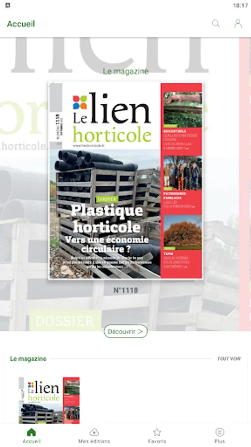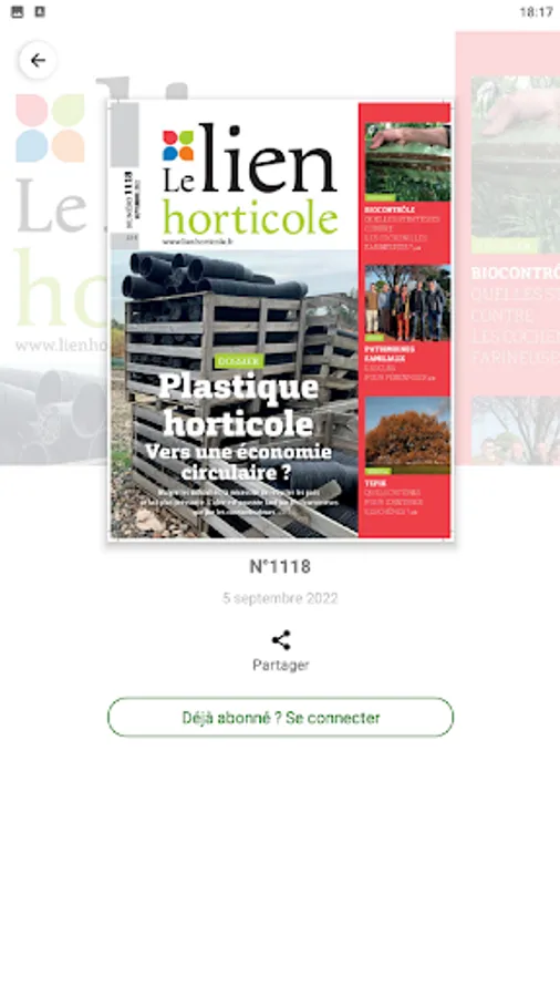 You will find each month thanks to this application the new issue + all the previous issues published by Le lien horticole.